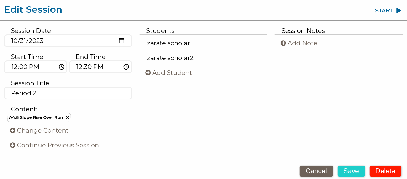 From the tutor dashboard, go to the sessions tab and click on the calendar view. Then, go to the desired week, find it, and click on the session. Once you are in the session details, you can press Start Session to bring up a past session.