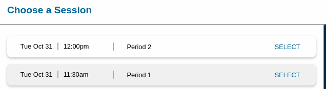 In the new window, find the session you wish to continue and click "Select" (see image)