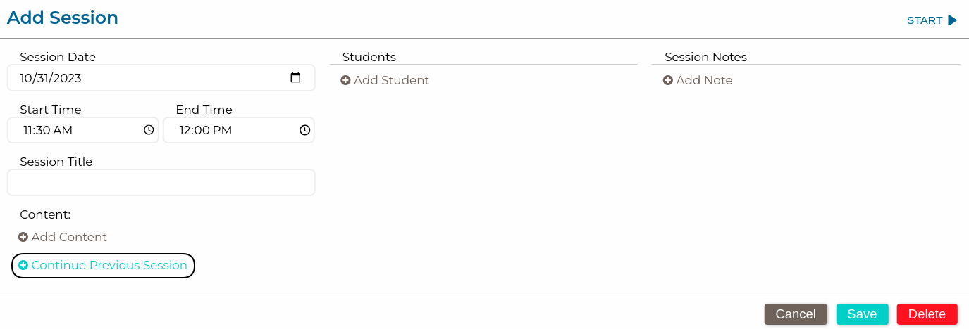 If you have a session you wish to have students continue, using the "Continue Session" may be helpful.