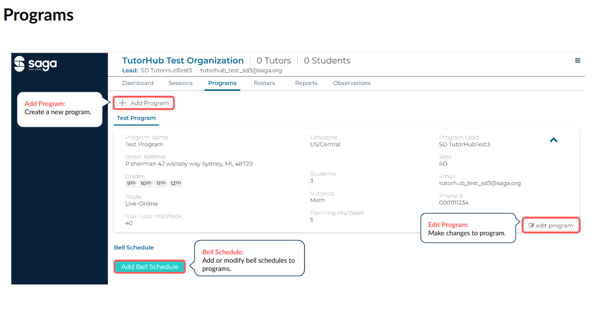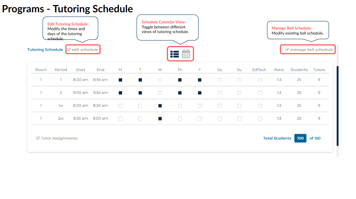 - The Program selected will also need a Bell Schedule and a Tutoring Schedule