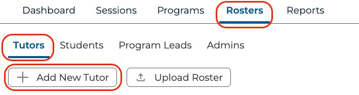 Use the Admin Dashboard to create and manage your roster of tutors, either through the Roster Tab or the Program tab.