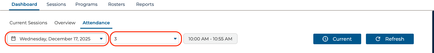 When in the Attendance sub-tab, you can use the date picker drop down and period selector drop down to select the date you want to edit.