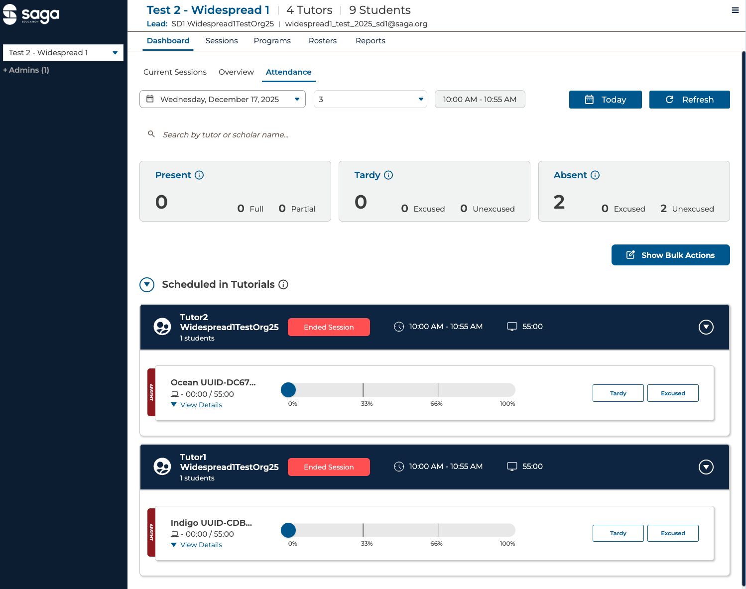Both Administrators and Tutors can take attendance in Saga Connect. To get started, navigate to the Dashboard and then to Attendance.