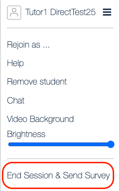From Saga Connect, the tutor presses End Session & Send Survey at the end of the session.
